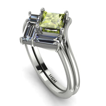 Those who want something eye-catching, which has a look that will be in fashion forever, will love this Stacking Princess Peridot Ring. This Stacking Princess Peridot Ring comprises of a lovely double band, with a princess shaped Ruby stacked on baguette shaped second Rubys designed in a V shape. With this Stacking Princess Peridot Ring you’ll get the ideal blend of first rate comfort and high quality.