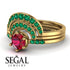 This appealing and the perfect Stacking Ruby Bridal Set features an exquisite triple band with two stacking half-round rings, which has a round center stone, as many stones around it. This Stacking Ruby Bridal Set is the perfect set for you.
