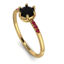 Glow with style and lavishness with this irresistible Basket black diamond Ring. This Basket Diamond Ring has a superb design and refined appeal, thanks to its narrow band and round center black diamond. Furthermore, it has second, smaller round stones on the sides. Get this Basket black diamond Ring and you’ll have a piece of jewelry she will always wear.