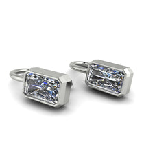 An elegant statement for any occasion these Bezel-Set drop earrings feature emerald-cut diamond. These dangle lever back earrings have the standard fish hook. Lever back earrings are a great everyday alternative to stud earrings and create a very feminine drop earring look.
