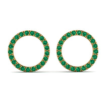 Regardless of whether you want something classic and timeless, or you desire to grace your collection with something fresh and new, these Circle Stud Emerald Earrings are for you. These Circle Stud Emerald Earrings are circular in shape and are completely covered in round Emeralds. When you want something that is perfect, this Circle Stud Emerald Earrings will exceed your expectations.