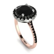 Two Tones Gorgeous Round Cut Black Diamond Pave Engagement Ring With Hidden Stone - Ellen No. 81