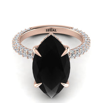 Hidden Halo Marquise Cut Black Diamond Engagement Ring - Doris No. 8
