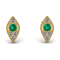 Perfectly petite, these vintage-inspired Emerald stud earrings are an adorable look she'll never want to take off. Crafted in marquise shape gold, each anytime earring showcases a sparkling in an intricate milgrain-lined bezel setting. Captivating Emerald and a bright polished shine, these post earrings secure comfortably with friction backs.