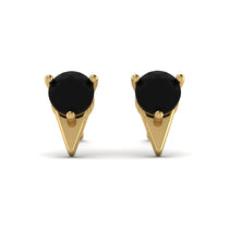 These Vintage earrings features 3 prong set round black diamond with a triangle sits below the center stone and the contrast really makes the statement earring pop. The triangle that hang from prong set black diamond posts so they also give some sparkle. These earrings have a friction back post, so you don’t have to worry about losing them. These Mid-Century earrings are just under an inch in length.