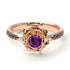 My ‘Elena’ Rose Amethyst ring brings the beauty of Flowers Amethyst and Black Diamonds together in one exquisite and comfortable ring. Nestled in the center of the flower is a single Natural Amethyst, flanked on either side by 5 smaller natural black diamonds. Set in solid 14K Rose gold, this vintage antique engagement ring is sure to make her throw her arms around you, give you a huge kiss and say yes!