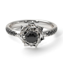My ‘Elena’ rose natural black diamond ring brings the beauty of flowers and diamonds together in one exquisite and comfortable ring. Nestled in the center of the flower is a single natural black diamond, flanked on either side by 5 smaller natural black diamonds. Set in solid 14K rose gold, this vintage antique engagement ring is sure to make her throw her arms around you, give you a huge kiss and say yes!