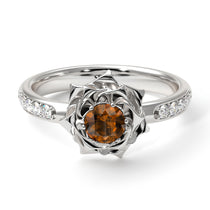 My ‘Elena’ Rose Brown Diamond ring brings the beauty of Flowers Brown Diamond and Diamonds together in one exquisite and comfortable ring. Nestled in the center of the flower is a single Natural Brown Diamond, flanked on either side by 5 smaller natural diamonds. Set in solid 14K White gold, this vintage antique engagement ring is sure to make her throw her arms around you, give you a huge kiss and say yes!