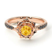 My ‘Elena’ Rose Сitrine ring brings the beauty of Flowers Сitrine and Black Diamonds together in one exquisite and comfortable ring. Nestled in the center of the flower is a single Natural Сitrine, flanked on either side by 5 smaller natural black diamonds. Set in solid 14K Rose gold, this vintage antique engagement ring is sure to make her throw her arms around you, give you a huge kiss and say yes!