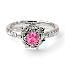 My ‘Elena’ Rose Pink Moissanite ring brings the beauty of Flowers Pink Moissanite and Diamonds together in one exquisite and comfortable ring. Nestled in the center of the flower is a single Natural Pink Moissanite, flanked on either side by 5 smaller natural diamonds. Set in solid 14K White gold, this vintage antique engagement ring is sure to make her throw her arms around you, give you a huge kiss and say yes!