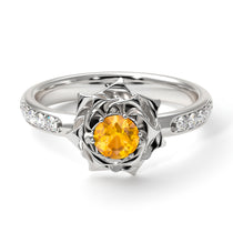 My ‘Elena’ Rose Yellow Diamond ring brings the beauty of Flowers Yellow Diamond and Diamonds together in one exquisite and comfortable ring. Nestled in the center of the flower is a single Natural Yellow Diamond, flanked on either side by 5 smaller natural diamonds. Set in solid 14K White gold, this vintage antique engagement ring is sure to make her throw her arms around you, give you a huge kiss and say yes!