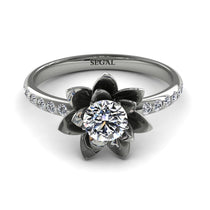 White Gold 0.9 Carat Round Cut Diamond Classic Lotus Flower Engagement Ring - Her name is simply... 'Lotus'. This Beautiful unique Gold Lotus flower engagement ring is one of my personal favorites and best creations. The Lotus flower is considered by many cultures to be a symbol of Rebirth, Purity and exquisite unparalleled beauty. There is no doubt this ring is the perfect match for those special and unique women out there.