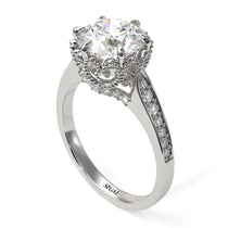 This exquisite piece features a brilliant round-cut diamond set in a classic setting beautifully complemented by milgrain accents. The intricate milgrain edges add a unique texture, complementing the sparkle of the central diamond. It's the perfect choice for those who appreciate a blend of classic and contemporary styles. You can select your preferred center stone size and shape for the center stone, which is then elegantly accompanied by diamond and side stones.Crafted with care and precision, this ring is available in 14k gold, 18k gold, or platinum, making it a timeless treasure.