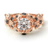 Rose Gold 0.84 Carat Round Cut Diamond Designer Unique Engagement Ring - An engagement marks the beginning. Plant the seed for your love to grow lusher with this unqiue ornate botanical ring. There are 101 good things to say about a man who gives flowers, but there are a million and one to say about a man who gifts an eternal bouquet of flowers that shines from every angle. A wreath of pointed-petal blossoms and stones surround the scintillating central stone. The design continues with a matching flower on each side and captivating band cutouts.
