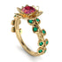 One of our favorite statement engagement rings, this exquisite design features 17 scintillating stones and story-telling enchantment. Sprouting jewel-set leaves climbing both sides of a slender band and a brilliant-cut stone, this treasured piece was modeled off Grecian laurel wreaths. Our decadent take on the historic prize makes it a dream-come-true ring that always catches someone's impressed eye.