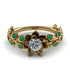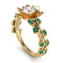 One of our favorite statement engagement rings, this exquisite design features 17 scintillating stones and story-telling enchantment. Sprouting jewel-set leaves climbing both sides of a slender band and a brilliant-cut stone, this treasured piece was modeled off Grecian laurel wreaths. Our decadent take on the historic prize makes it a dream-come-true ring that always catches someone's impressed eye.