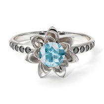 White Gold 0.5 Carat Round Cut Aquamarine Pave Flower Engagement Ring - Her name is simply... 'Lotus'. This Beautiful unique Gold Lotus flower engagement ring is one of my personal favorites and best creations. The Lotus flower is considered by many cultures to be a symbol of Rebirth, Purity and exquisite unparalleled beauty. There is no doubt this ring is the perfect match for those special and unique women out there.