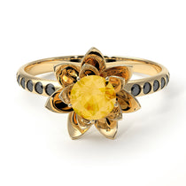 Yellow Gold 0.5 Carat Round Cut Citrine Pave Flower Engagement Ring - Her name is simply... 'Lotus'. This Beautiful unique Gold Lotus flower engagement ring is one of my personal favorites and best creations. The Lotus flower is considered by many cultures to be a symbol of Rebirth, Purity and exquisite unparalleled beauty. There is no doubt this ring is the perfect match for those special and unique women out there.