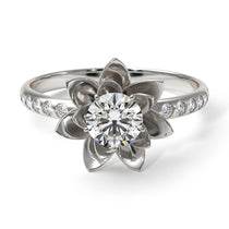 White Gold 0.5 Carat Round Cut Diamond Classic Lotus Flower Engagement Ring - Her name is simply... 'Lotus'. This Beautiful unique Gold Lotus flower engagement ring is one of my personal favorites and best creations. The Lotus flower is considered by many cultures to be a symbol of Rebirth, Purity and exquisite unparalleled beauty. There is no doubt this ring is the perfect match for those special and unique women out there.