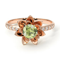 Rose Gold 0.5 Carat Round Cut Peridot Classic Lotus Flower Engagement Ring - Her name is simply... 'Lotus'. This Beautiful unique Gold Lotus flower engagement ring is one of my personal favorites and best creations. The Lotus flower is considered by many cultures to be a symbol of Rebirth, Purity and exquisite unparalleled beauty. There is no doubt this ring is the perfect match for those special and unique women out there.