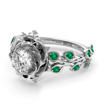 One of our favorite statement engagement rings, this exquisite design features 17 scintillating stones and story-telling enchantment. Sprouting jewel-set leaves climbing both sides of a slender band and a brilliant-cut stone, this treasured piece was modeled off Grecian laurel wreaths. Our decadent take on the historic prize makes it a dream-come-true ring that always catches someone's impressed eye.