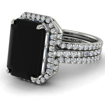 Exhibit splendor, grace and a strong sense of fashion with this fascinating Halo diamond Emerald Cut Ring with Hidden Diamonds. It has a baguette diamond center stone, with 30 round stones surrounding it. For turning heads and impressing everyone, this Halo diamond Emerald Cut Ring with Hidden Diamonds is just what you need.