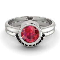 This Bezel Ruby Bridal Set is a comforting and classy ring, and you’ll definitely love it. It has a gorgeous round-shaped on the top, in its own circular band, and the band is circular as well. If you’re still undecided and want something comfortable, choose this Bezel Ruby Bridal Set.