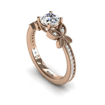 When you imagine the perfect engagement ring for your boyfriend to propose with, what comes to mind? Do you want a Unique Engagement Ring, an engagement ring that is a bit different than all other rings? Would you like it to have a Butterfly or two on it? Do you want an Edwardian Ring or perhaps a Victorian Ring? If you answered yes to even one of these questions, you are dreaming of our 'Amelia' ring. This 6mm/0.84Ct center stone with beautiful natural side stones is made with 14K Gold and has everything that you want in a ring and more.