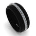 A row of round diamond lends elegance to this distinctive wedding band. With a total diamond weight this fine jewelry ring is styled in black titanium. Black Titanium is made from a patented formula and is prized for its strength and durability. This wedding band, available in sizes.