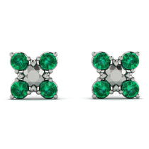 Add a flare to your casual wear with these Emerald stud earrings. Fashioned in gold, each attractive earring features a round shaped center with four round shaped Emerald set in bezel setting. Captivating with small hearts next to the prongs gives a brilliant buffed luster, these post earrings secure comfortably with friction backs.