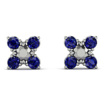 Add a flare to your casual wear with these Sapphire stud earrings. Fashioned in gold, each attractive earring features a round shaped center with four round shaped Sapphire set in bezel setting. Captivating with small hearts next to the prongs gives a brilliant buffed luster, these post earrings secure comfortably with friction backs.