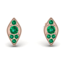 Perfectly petite, these vintage-inspired Emerald stud earrings are an adorable look she'll never want to take off. Crafted in marquise shape gold, each anytime earring showcases a sparkling in an intricate milgrain-lined bezel setting. Captivating Emerald and a bright polished shine, these post earrings secure comfortably with friction backs.