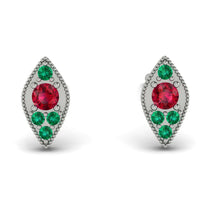 Perfectly petite, these vintage-inspired Ruby stud earrings are an adorable look she'll never want to take off. Crafted in marquise shape gold, each anytime earring showcases a sparkling in an intricate milgrain-lined bezel setting. Captivating Ruby and a bright polished shine, these post earrings secure comfortably with friction backs.