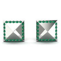 Our alluring Emerald Frame Earrings invite you to look a little closer! These tilted square-shaped stud earrings fashioned in gold each feature the center surrounded by a frame of petite round Emerald. These earrings come with a secure with friction backs.