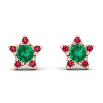 Glow in our sparkly star earrings. The adorable star studs light up with Emerald in the center with five different Emerald enhancing the five-point of the star thereby illuminating the look of the wearer. These post earrings secure comfortably with friction backs.