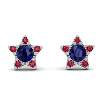 Glow in our sparkly star earrings. The adorable star studs light up with Sapphire in the center with five different Sapphire enhancing the five-point of the star thereby illuminating the look of the wearer. These post earrings secure comfortably with friction backs.