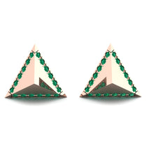 Take your look up a notch with these sleek Emerald stud earrings. Fashioned in warm gold, each triangular stud shimmers with a 3-way border by pavé-set bright white Emerald. White Emerald line the edges of each design, ensuring sparkle and shine from every angle. Beautifully finished and ready to wear, these glistening earrings are secured comfortably with friction back
