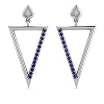 These beautiful Triangle Sapphire Stud Earrings will make you feel gorgeous and self-confident with its elegance and style. These Triangle Sapphire Stud Earrings are triangles in shape and each has a row of thirteen round Sapphires on one earring. With their classy look, these Triangle Sapphire Stud Earrings will be a stunning addition to your ears.