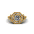This handmade engagement ring showcases a stunning emerald cut Diamond at its center, framed by an octagonal halo adorned with milgrain detailing and smaller round Diamonds. This adds a luxurious touch, enhancing the vintage-inspired Art Deco design. Intricate detailing on the shank, featuring additional Diamonds, elevates the ring's elegance and sparkle. This exquisite piece is perfect for those who appreciate classic craftsmanship and modern sophistication.