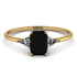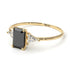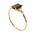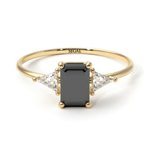 Blending charm and style with comfort, this Emerald Cut black diamond with Triangles Ring consists of a band with an emerald shaped center stone, which has two triangle shaped stones on the sides. It will be stunning on your finger. With its minimalist and geometrical design, you’ll love this Emerald Cut black diamond with Triangles Ring.