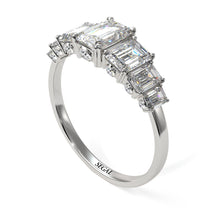 If you want to be original and have a unique look, you’ll get it with this captivating Emerald Cut diamond Ring with Hidden Diamonds. This Emerald Cut Diamond Ring with Hidden Diamonds has a lovely diamond center stone, with three more emerald cut stones to either side of it. When you want to stand out and be noticeable, this Emerald Cut diamond Ring with Hidden Diamonds is for you.