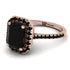This Gorgeous Emerald Cut black diamond Pave Engagement Ring with Hidden Stone is a uniquely fresh approach to a classic engagement ring. Beautiful emerald cut 2ct center stone with a sparkling halo of stones around, elegant pave of stones and dazzling surprise stone inside the ring will make her fall in love with this ring at first sight.