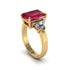 Introducing our stunning Ruby Emerald Cut Three Stone Ring, adorned with custom baguette diamonds to exude elegance and sophistication. Crafted with precision and care, this exquisite piece is a testament to timeless beauty and impeccable craftsmanship.Embrace the allure of timeless beauty and indulge in the sophistication of our Ruby Emerald Cut Three Stone Ring with custom baguette diamonds today.