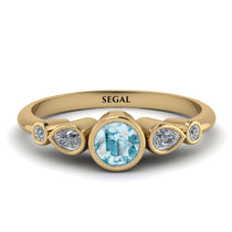 Lovely bezel symmetrical Aquamarine ring, to express your love to your someone special. Beautiful ring with beautiful finish can be wear at different events, even choose it for your wedding ring. Shinny Aquamarine enhance the beauty of the whole ring. This ring expresses the love of yours towards your loved one.