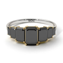 Bring something fresh and new into your style with this Emerald Cut black diamond Geometric Ring. This ring is a charming band with a center emerald cut black diamond and three more emeralds cut stones in each side of it. With this Emerald Cut black diamond Geometric Ring, you get a ring with both luxury and style.