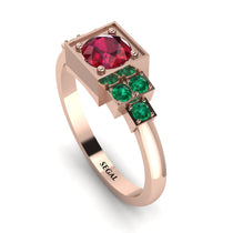 Being marvelously comfortable and stunningly beautiful, this Square Ruby Engagement Ring will make you fall in love with it. This irresistible Square Ruby Engagement Ring is an eye-catching band, with a center Ruby in a square shaped top, which has two more round stones in smaller square shapes to either side of it. You’ll be making the right choice with this striking Square Ruby Engagement Ring.