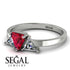 This Triangle Ruby Engagement Ring is a graceful and elegant ring, and you’ll definitely fall in love with it. It has a striking calf shaped Ruby on the top and two triangle shaped stones on the sides of the center one, while the band of the ring is circular. If you’re still undecided and want something comfortable, choose this Triangle Ruby Engagement Ring.