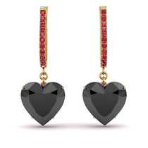 These heart black diamond hoop earrings promise to be the center of attention with their romantic brilliance. Fashioned in sleek, each hoop earring features a swoosh of shimmering white diamonds along the outer edge. A heart-shaped charm, lined with shimmering stones at the bottom that suspends from the hoop adding a radiant sparkle to these earrings. The hoop earrings secure comfortably with omega backings.