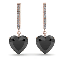 These heart black diamond hoop earrings promise to be the center of attention with their romantic brilliance. Fashioned in sleek, each hoop earring features a swoosh of shimmering white diamonds along the outer edge. A heart-shaped charm, lined with shimmering stones at the bottom that suspends from the hoop adding a radiant sparkle to these earrings. The hoop earrings secure comfortably with omega backings.