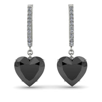 These heart black diamond hoop earrings promise to be the center of attention with their romantic brilliance. Fashioned in sleek, each hoop earring features a swoosh of shimmering white diamonds along the outer edge. A heart-shaped charm, lined with shimmering stones at the bottom that suspends from the hoop adding a radiant sparkle to these earrings. The hoop earrings secure comfortably with omega backings.
